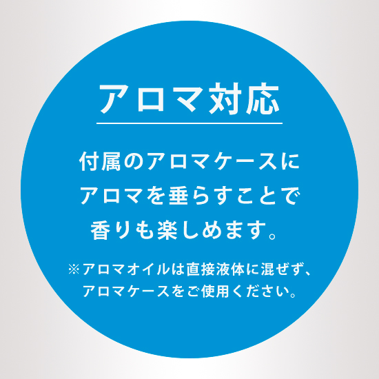 ※アロマオイルは直接液体に混ぜず、アロマケースをご使用ください。